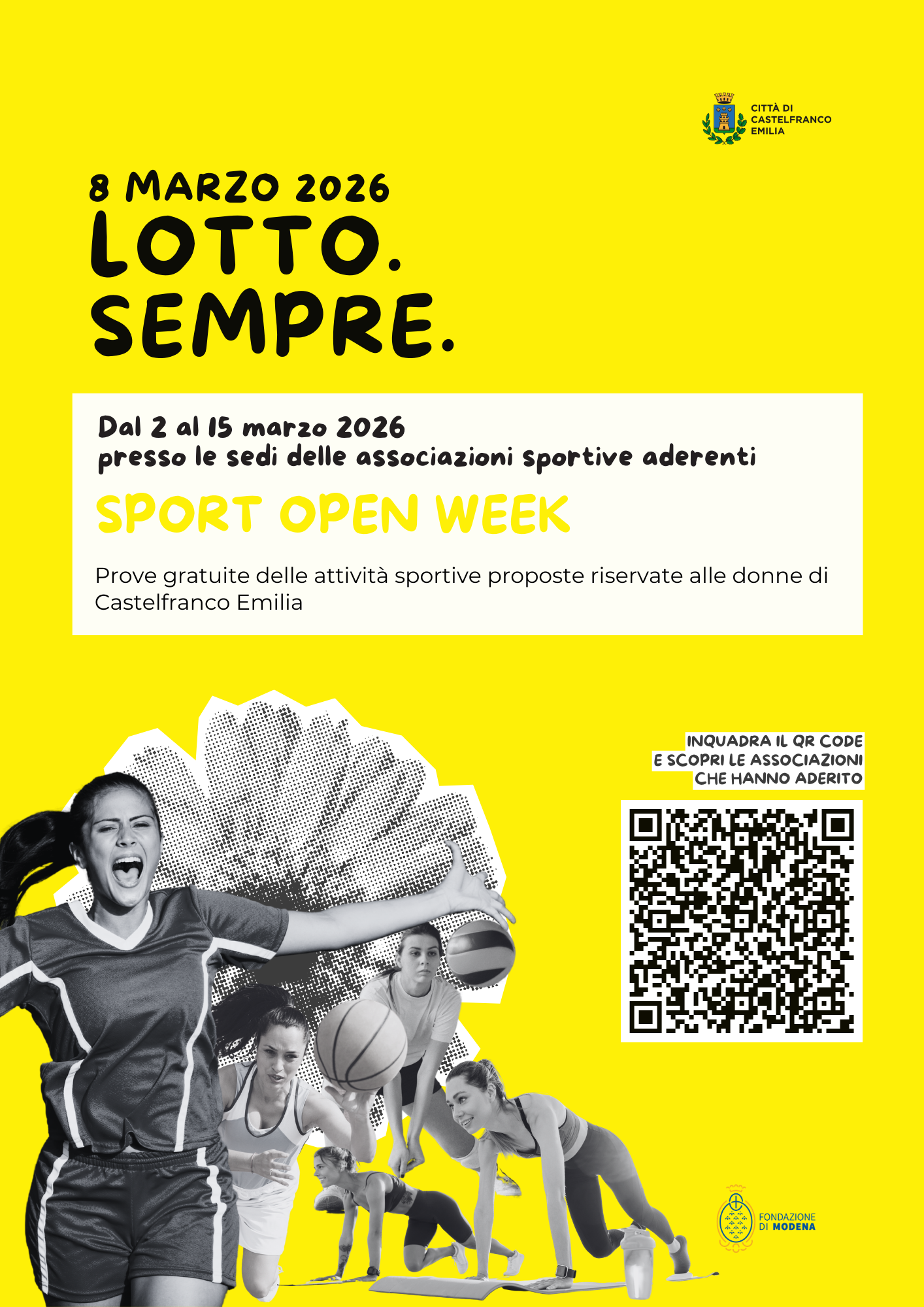Prove gratuite presso le associazioni sportive rivolta alle donne di Castelfranco Emilia. Consulta qui (PDF - 396,2 KB) l'elenco delle società sportive aderenti all'iniziativa.