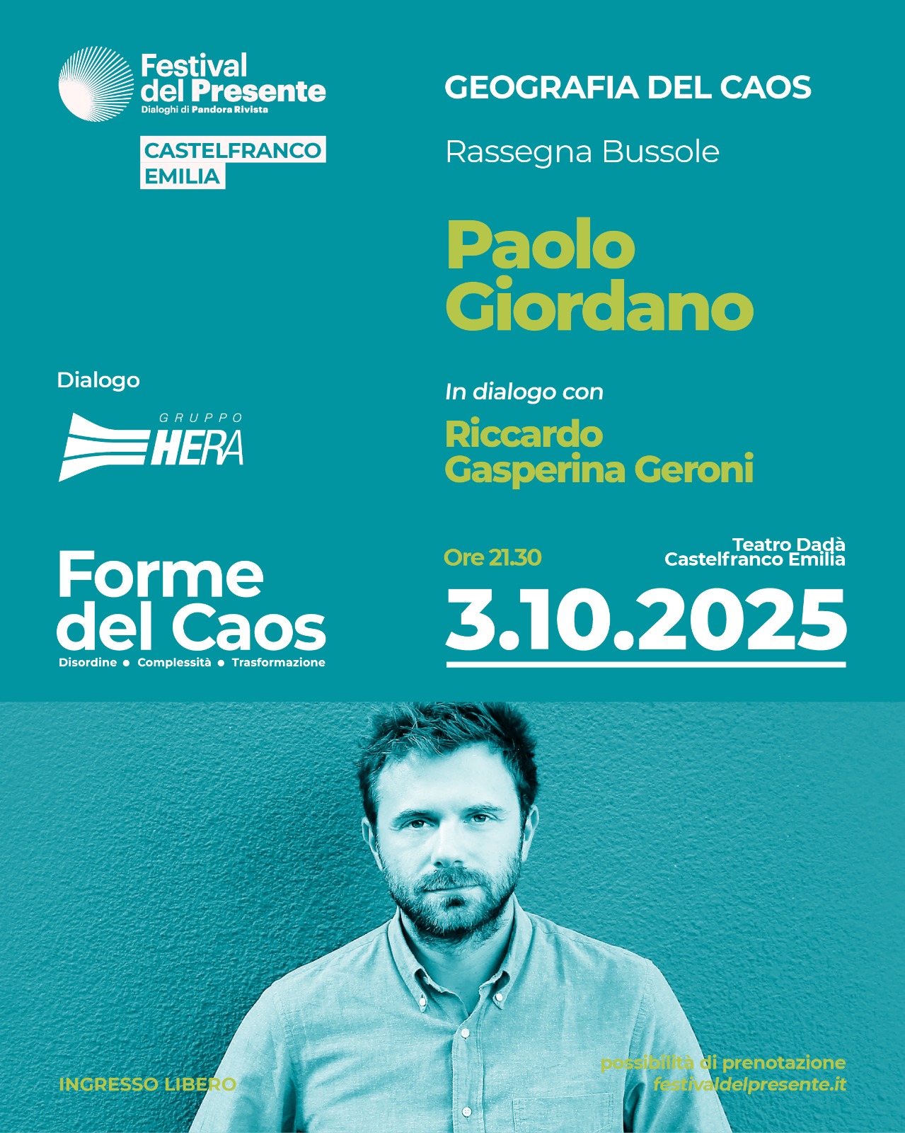 Il 3 ottobre, alle 21:30, presso la Biblioteca Comunale si terrà il primo incontro della rassegna "Bussole" - Festival del Presente di Pandora Rivista - con lo scrittore Paolo Giordano.